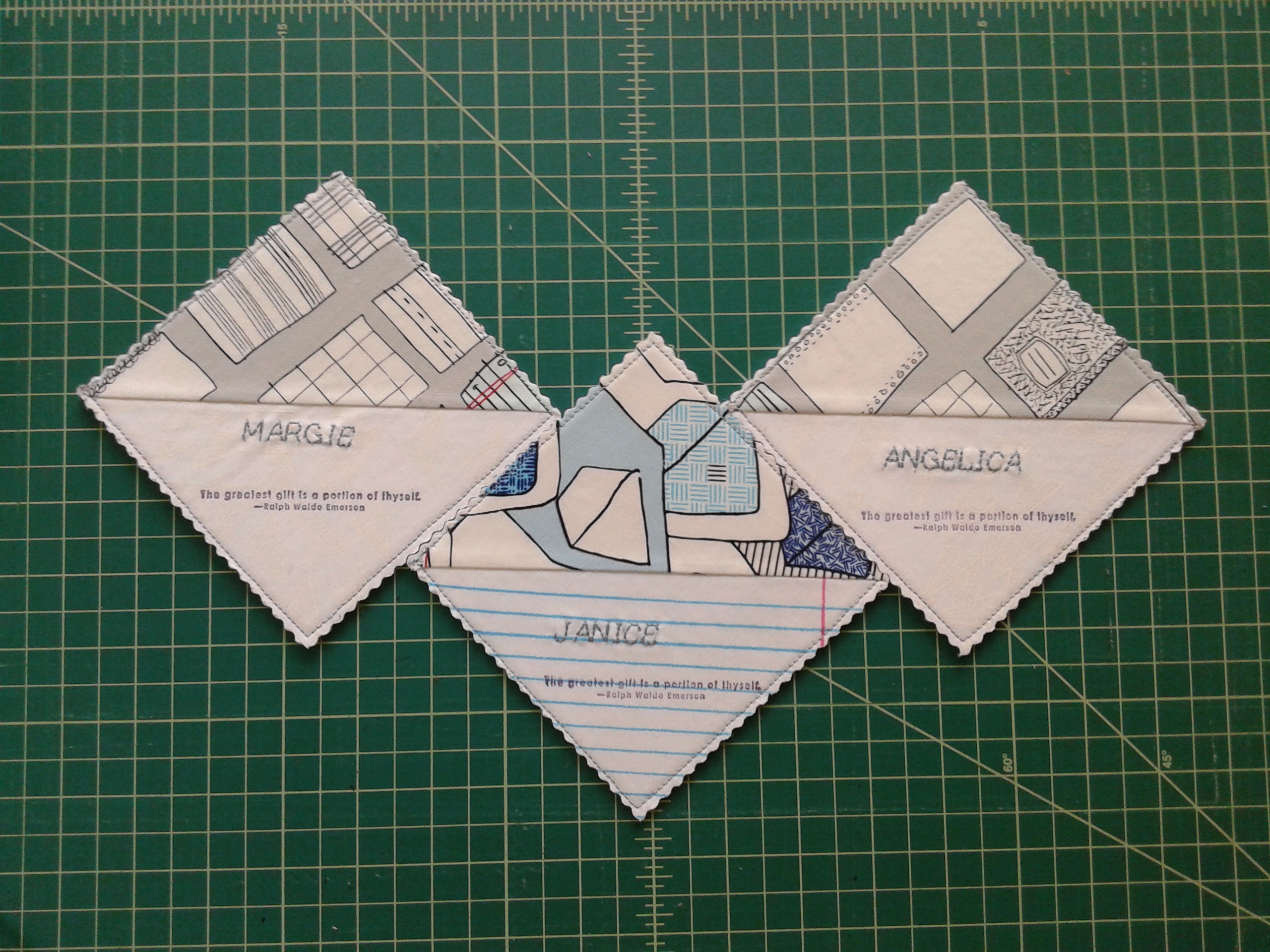 Now, when I book a gig, acting, stand up etc., I am pleased as punch, realizing I not only get to work doing what I love but also get to finish the deal with m y own kind of personalized thank you. I remember an episode of Seinfeld where the gang spent a nice chunk of time debating when it was proper to pitch a greeting card in the trash. Ā That episode comes to mind when I craft and it is why I prefer textiles as my medium.