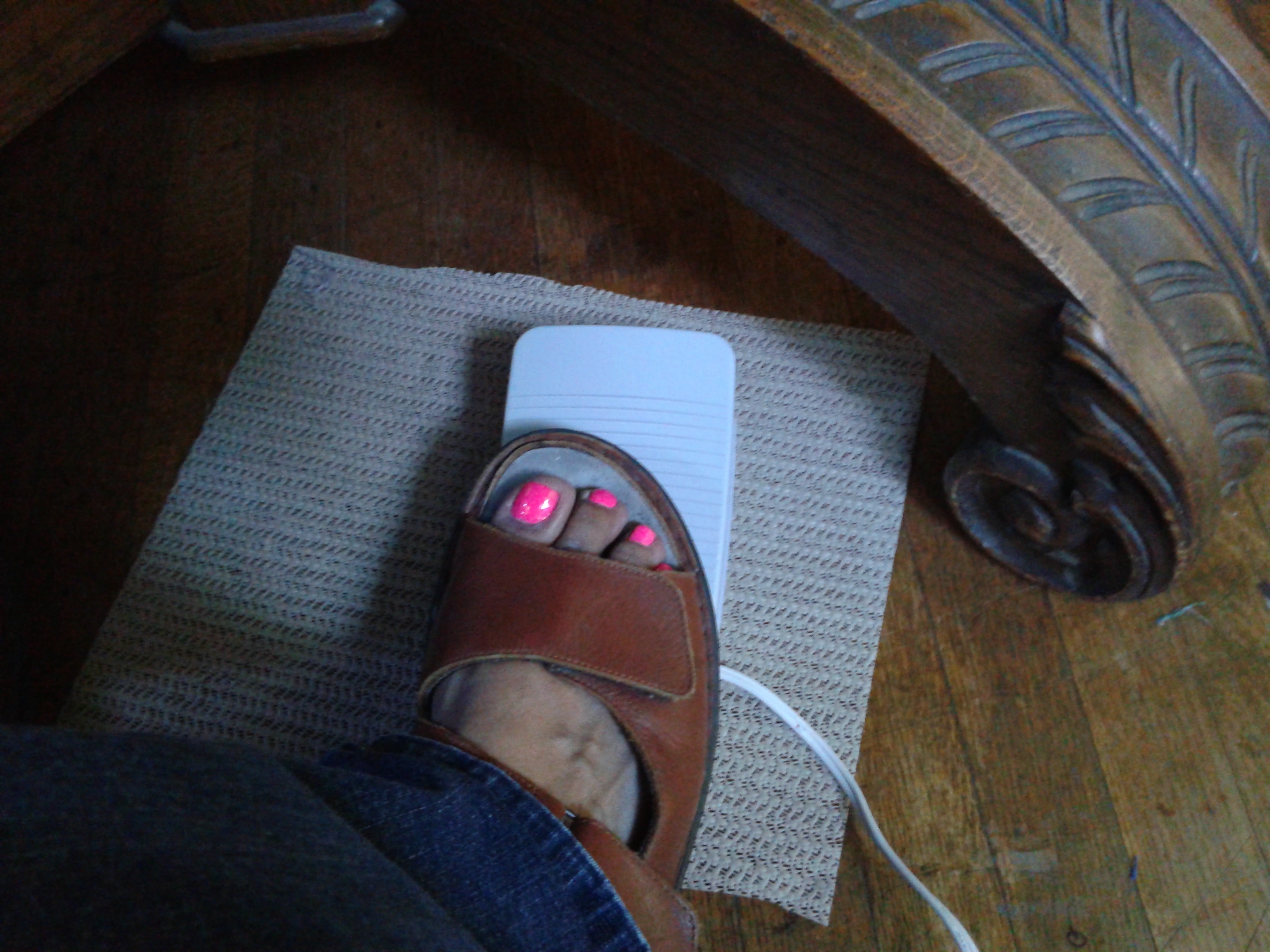 p.s. You know how that peddle can sometimes slip away from you when you are at the most crucial part of your sewing project? Well this is how I stop the skids. Place a piece of textured drawer liner under the foot peddle and you will be good to go!