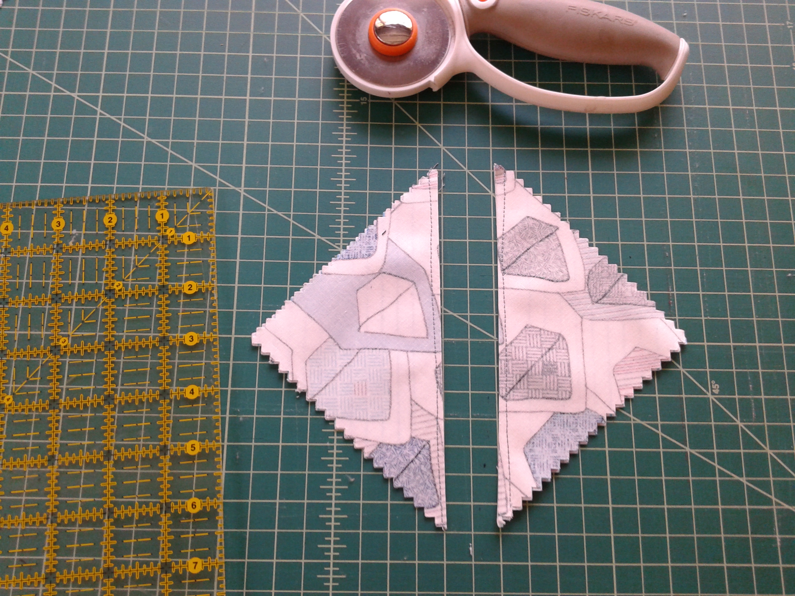 If I were making a block this is where I would sew the half triangle squares together but these are destined for a postcard so the journey continues with light at the end of the tunnel.